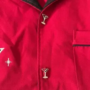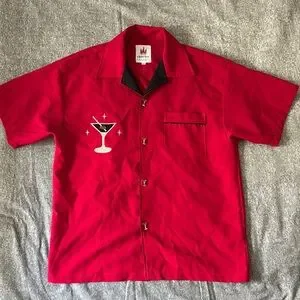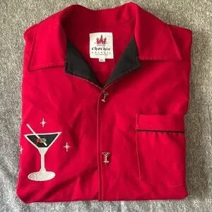 Chochie Casuals Red Bowling Shirt with Martini Embroidery Men’s XL