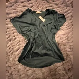LOFT Hunter Green/Teal Velour Blouse NWT