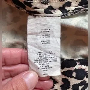 Fabric content is 97% cotton, 3% spandex, so it does have some stretch.