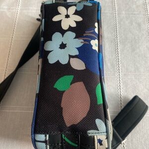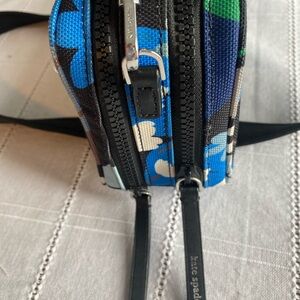 Almost new Kate Spade small camera bag, really in excellent condition. I believe it’s a Jae pattern, I purchased it at the Philadelphia Premium Outlets a few years ago. The strap is adjustable, 2 separate compartments & one has a 2 slit credit card holder. Polyester(Canvas type)material, no stains or defects. Approximate measurements 5”H x 7.5”w & 3”deep. Treat yourself, you know you deserve it!