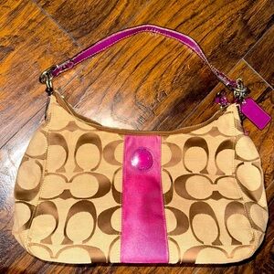 Coach Khaki and Fuchsia Shoulder Bag with Signature Monogram