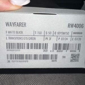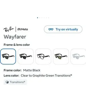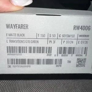 Sleek Ray-Ban Wayfarer sunglasses in matte black. Features clear to graphite green transition lenses.