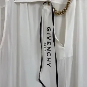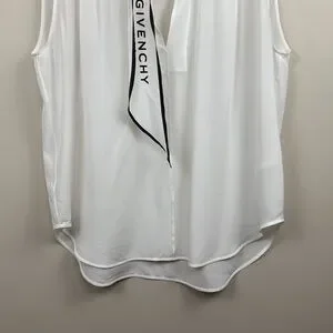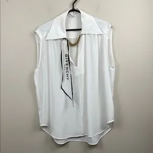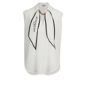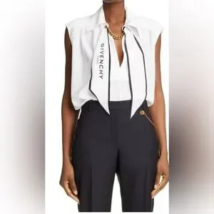GIVENCHY white silk logo scarf collared sleeveless blouse fr 42 /USA 10