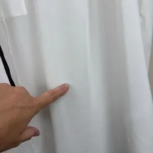 I did wear this once but it was too large on me. May have very slight discolouration around the back of neck