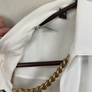 Crepe de chine top Color: white Scarf insert trimmed in black Curved hem Longer cut on the back Collar chain