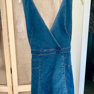 This chic blue sundress by Free People is perfect for a casual night out, featuring a sleeveless design and a flattering V-neckline. Its fitted silhouette and mini length offer a contemporary and stylish look. The dress's minimalist design ensures versatility and timeless appeal.