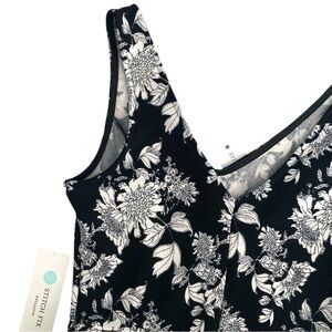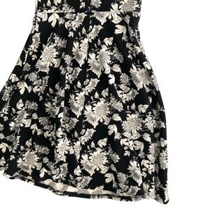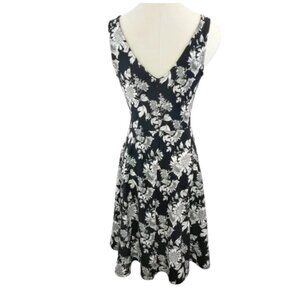 Soloiste Audrey Knit Sleeveless Black White Floral Flare V-Neck Dress New Sz S