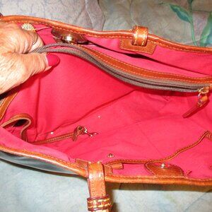 It is 11 x 14" and is suede on bottom Inside looks great It was used but it is in great shape