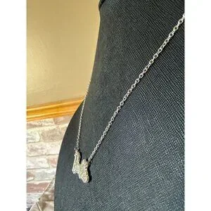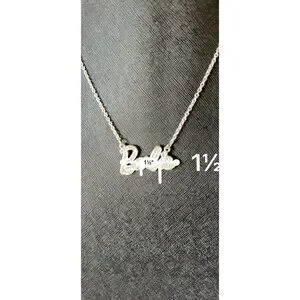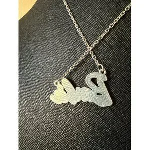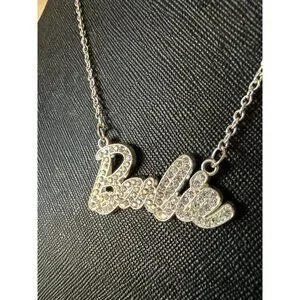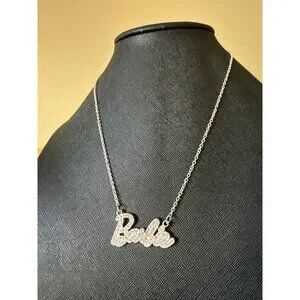 Barbie-Inspired Silver Rhinestone Pendant Necklace Script Logo With Chain