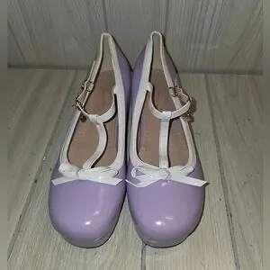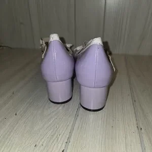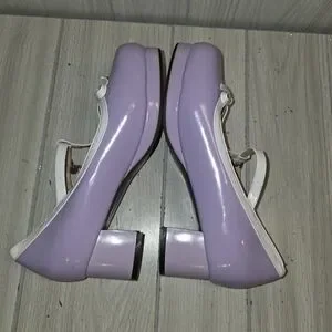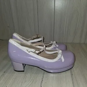 Jingpin Women Sweet Faux Patent Leather Chunky Heel Shoes Buckle Strap Bow Platform Mary Jane T Strap Round Toe Comfort Dress Pumps Pin Up Girl Lavender And White Retro Cottagecore Boho