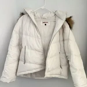 Giacca Puffer Jacket Winter Fur Lining White Brown Warm Coat Snow Jacket Size L