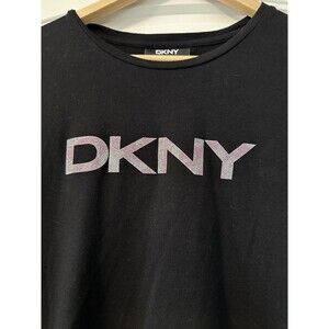 DKNY Black T Shirt With Silver 3D DKNY Print Light Fabric And Stretch Size M