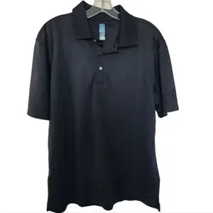 This PGA Tour polo shirt features a sleek black design, perfect for a polished and versatile look. Crafted from a comfortable cotton-blend knit, it offers a timeless style suitable for various occasions.