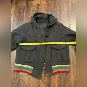 Coogi Australia Spell Out Rainbow Hooded Gray Jacket Coat Womens