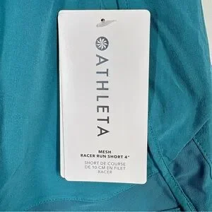 NWT Athleta Mesh Racer Run Athletic Short 4” in Teal/Dark Blue. Small