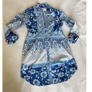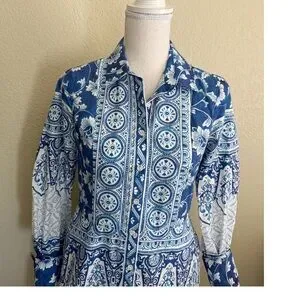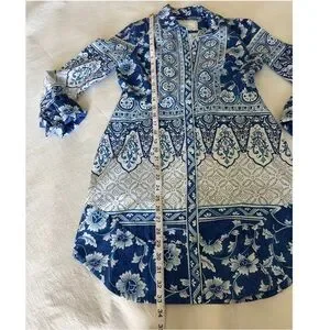 Anthropologie Printed V-Neck Buttonfront Shirtdress XS