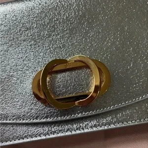 This Stuart Weitzman clutch in a dazzling silver hue exudes sophistication and elegance. Its sleek design and metallic finish make it a standout accessory for any formal occasion. Perfectly sized for essentials, this clutch adds a touch of glamour to your ensemble.