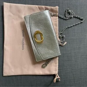 Stuart Weitzman Silver Metallic Clutch/Crossbody Chain