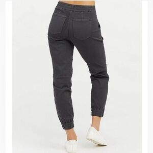 Stylish SPANX jogger pants in dark gray. Comfortable and versatile. Perfect for casual wear.