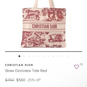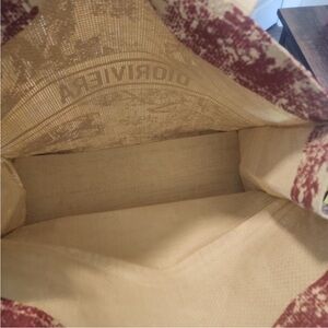 I can provide a Certificate of Authenticity upon request. This is an authentic CHRISTIAN DIOR Straw Dioriviera Tote in Red. This stylish bag is crafted of 100%raffia straw in beige with a red intricate design.