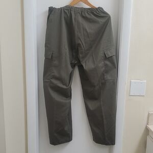 Explore rugged style with this olive green military-style jacket and pants set. Perfect for outdoor adventures or casual wear.