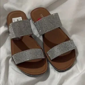Ladies Glittering Silver Slide Sandals. 6.5. NEW