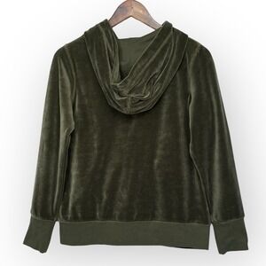 * Eddie Bauer Velour Hooded Full Zip Jacket Women Size PM Green Pocket Velvet