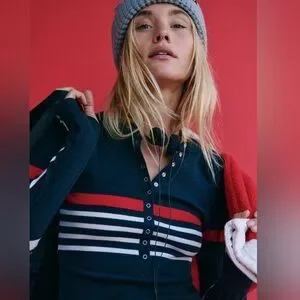 Fp movement black striped Henley Top