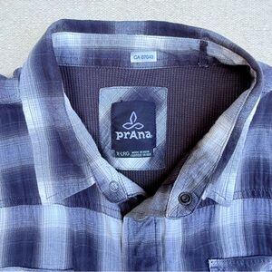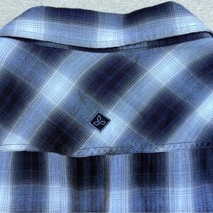 Prana Asylum Checkered Flannel Thermal Long Sleeve Shirt Black White Work XL