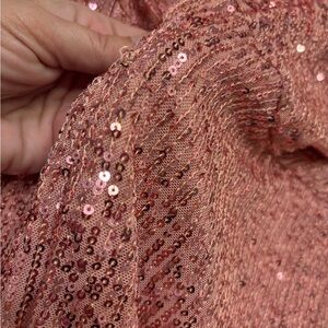 Chic coral / pink sequin short dress size Large. This dress is brand new, however, there are a couple loose threads that are in the pictures. Thin strap dress by Haute Monde. Ideal for parties or a girls night on the town. Dress has stretch material