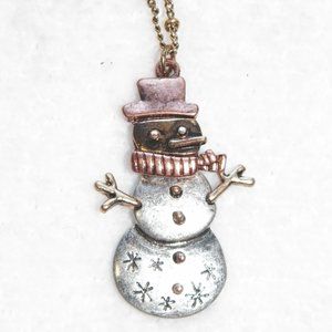 Rustic Articulating Snowman Necklace Earrings Set Tri-tone