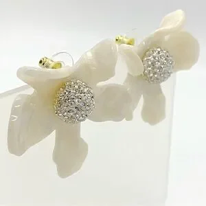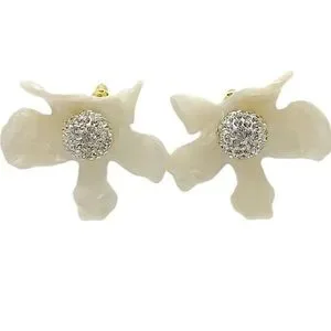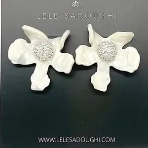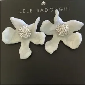 Stunning ivory white floral earrings by Lele Sadoughi. Features sparkling crystal center accents.