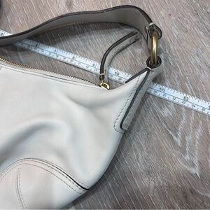 Chic 2007 white leather hobo bag by Coach. Features a stylish design with gold-tone hardware. Perfect for everyday use.