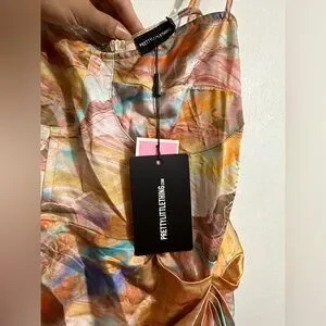 PLT Multi Marble Satin Ruched Skirt Corset Midi Dress Size 12