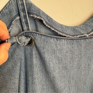 Stylish denim jumpsuit by Rewash. Features adjustable straps and a tie waist. Perfect for casual outings.