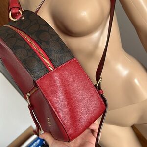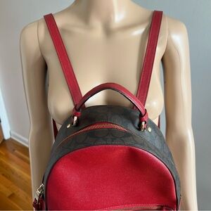 COACH Jordyn Backpack With Signature Canvas Detail Red Brown