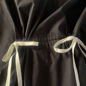 Banana Republic Cotton Cinch-waist top in black. Oversized fit. Exaggerated short sleeves. Contrasting ties at waist. V-neck. No stains or flaws. Armpit to armpit 18 inches. Length 23 inches.