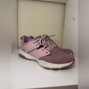Nike Womens Air Bela TR Running Shoe Pink purple with Gold Swoosh size 8