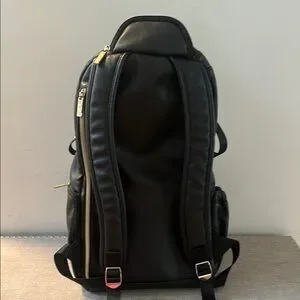 ELEGANTLY MODERN, CLASSICALLY CHIC: Elevate your style with our Black With Gold Hardware Boss design. This exquisite diaper backpack features a removable vegan leather accent tassel adorned with an engraved chain link charm, adding a dash of sophistication to your ensemble.
