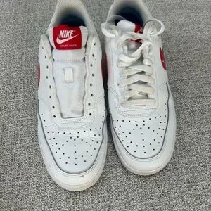Nike shoes with a white base and red swoosh. Ideal for everyday activities.