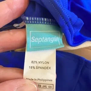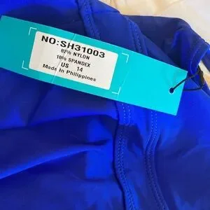 NWT Royal blue keyhole high neck tankini top. Adjustable straps. Sewn-in cups give shape and good support. Flattering and loose over tummy. Never worn. Purchased March 2025. No smoking/no pets m. Listing photo by Septangle on Amazon.com.