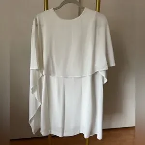 Chic white cape dress with flowing design. Perfect for formal occasions.