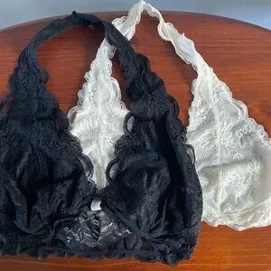 Free People Intimately Halter Neck Lace Bralette Bundle of Two (2) in Women's Medium (M) Black & White.