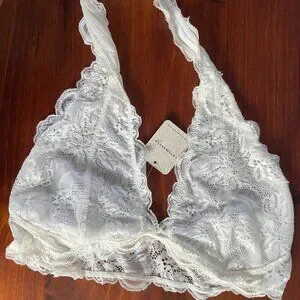 This is a bundle for two (2) Free People Intimately Bralettes in Women's Size Medium (M). The first is black and is new without tags (NWOT). The second is white and is new with tags (NWT). They are halter neck styles without padding, so they are both very lightweight and easy to wear. They were bought from Nordstrom and Free People itself respectively.