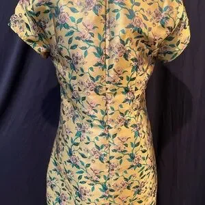 This elegant sheath mini dress by House of Harlow 1960 features a captivating blue and green pattern, perfect for a wedding guest or cocktail event. The dress boasts a flattering scoop neckline and charming flutter cap sleeves, creating a sophisticated and stylish look. 18” p to p 33” long 154