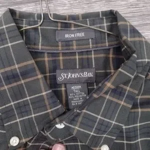 St. John's Bay Green Plaid Casual Button Down Shirt
