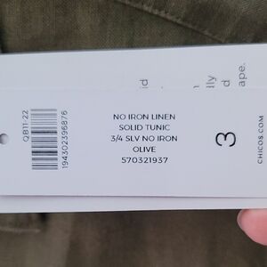 Chico's Olive No Iron Linen Tunic NWT. 3=16/XL.