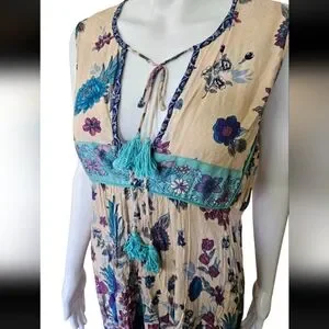 Size Medium. Excellent pre-owned condition. Minimally worn. Beautiful colors of pink, purple, teal. Tassel ties at v-neckline. Perfect for this summer season. Bright and colorful!!