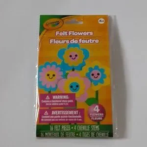 Set includes alphabet stickers, colorful chalk, play dough, felt flowers, and blue scissors. Playdough, flower kit, chalk, and stickers are new and unopened.