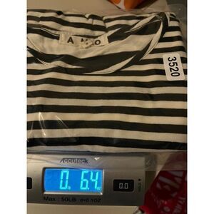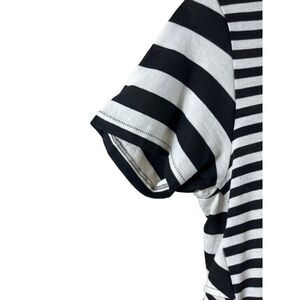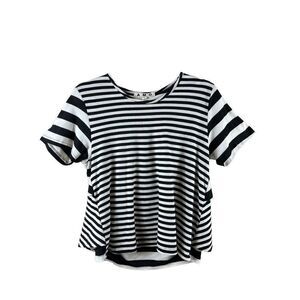 Anthropologie AMO Striped Ruffle Back Short Sleeve Crew Neck Tee Medium B&W